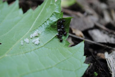 Be careful to inspect your leaves, this one had some sort of hatching beetle on the back of them, and the one below shows the trail of leaf borers. They're just bugs, but if you want your meal bug-free take a close look at your leaves.